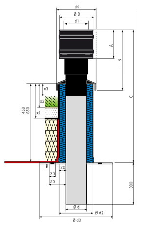 | Standrohr: | doppelwandig aus verzinktem Stahl mit Flansch. |